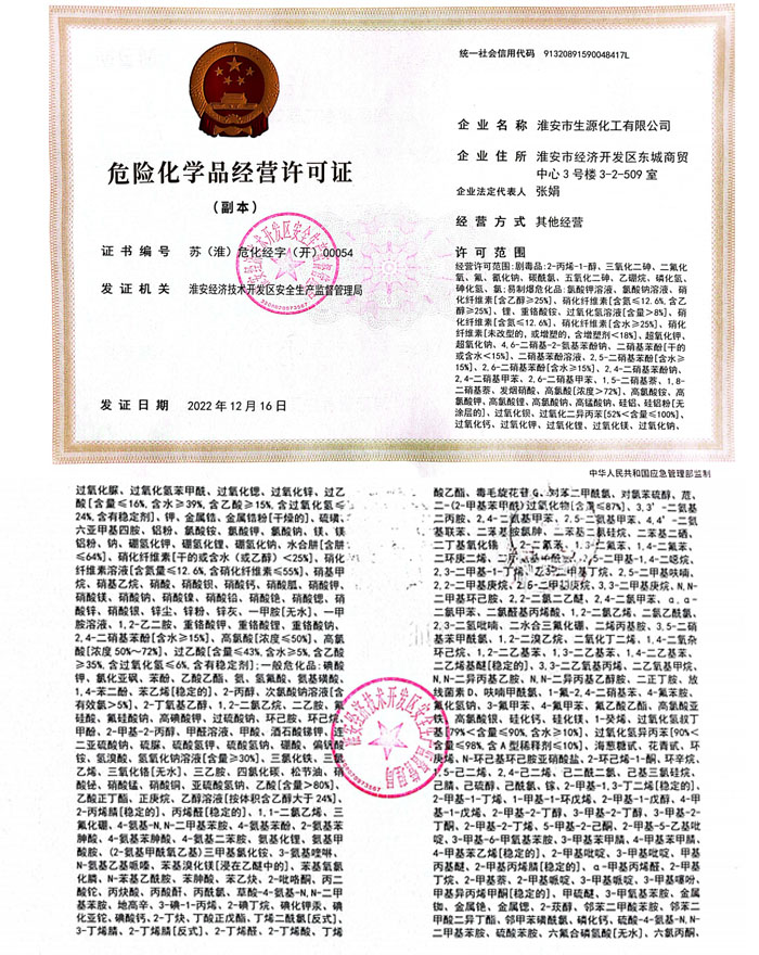 危險化學(xué)品經(jīng)營許可證